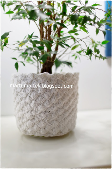 jestem wiecznie żądna zmian:) dlatego kupując wymarzone łóżko do sypialni oczami wyobraźni widziałam jego potencjał:) Po dwóch latach białego wezgłowia mamy własnoręcznie odpicowane łóżko.Materiał za 15 zł z lumpeksu,pistolet do tapicerowania z lidla za 20 zł i całkiem nowa jakość:) Doniczka opatulona sweterkiem ,własnoręcznie wyszydełkowanym.Chyba z nadejściem zimna mam potrzebę ocieplenia domu.